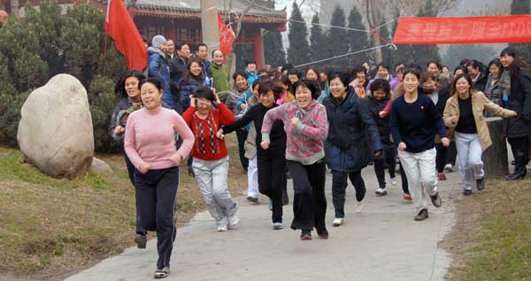 为丰富医院文化生活,提高职工身体素质,12月28日下午两点半,院工会、政工科在北门外环城公园举办了2011年度迎新年职工越野赛。 比赛得到了广大职工的积极响应,参赛选手冒着凌冽寒风参赛,兴致高涨,还有不少职工前来为选手们加油助阵。越野赛按照年龄和性别共分为中年女子组、青年女子组、中年男子组、青年男子组。比赛一开始,选手们争先恐后的奔向前方,浩浩荡荡的长跑队伍充分展示了色花堂