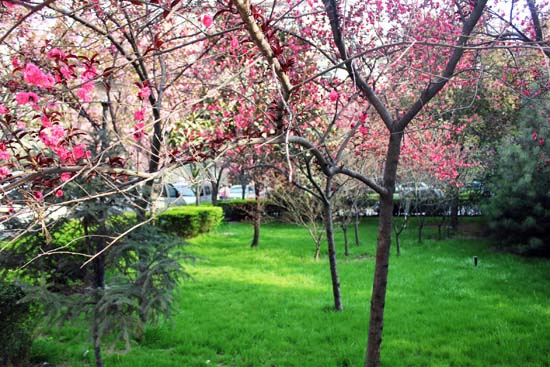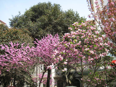 玉兰皎皎碧桃红, 樱花绚烂草葱茏。