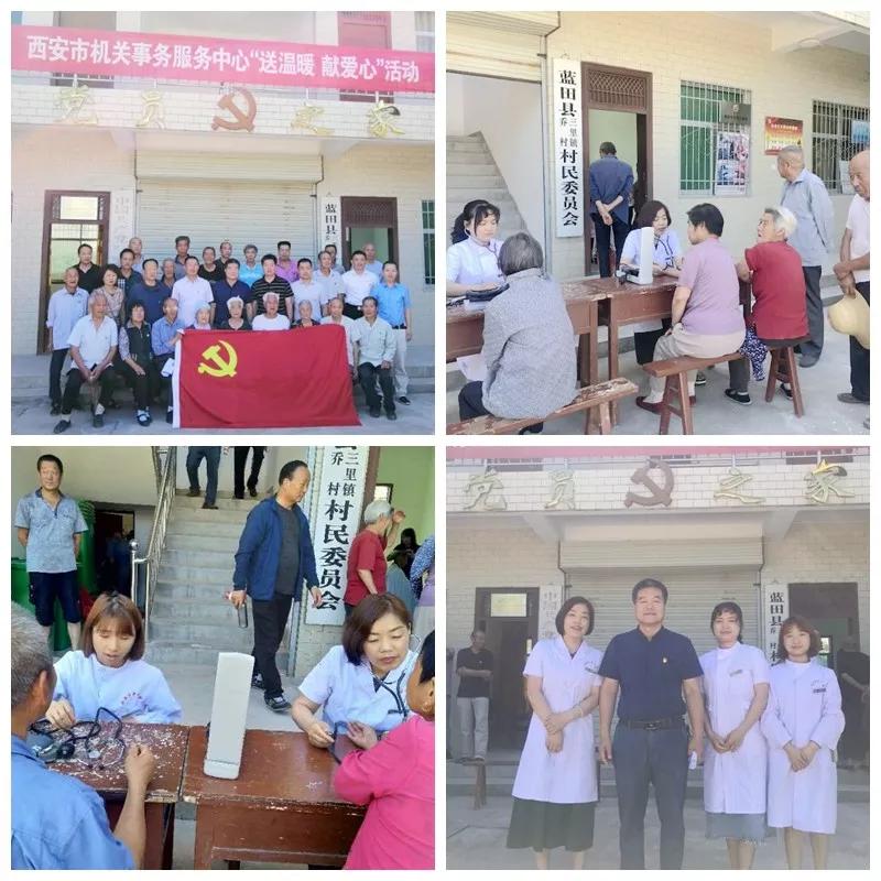 2019年7月1日,在建党98周年之日,为继承和弘扬党的优良传统和作风,充分体现党组织对老党员和村民的关怀和爱护,西安市机关事务管服务中心携手色花堂 市政府卫生所走进蓝田县三里镇乔村开展“送温暖、献爱心”义诊活动。活动由机关事务管理局正局级巡视员冯慧武带队,色花堂 市政府卫生所选派主治医生王艳华,主管护师刘洋,护师刘帆帆,一同为老党员和村民开展健康查体和义诊服务,并向他们致以节日的祝福和问候。