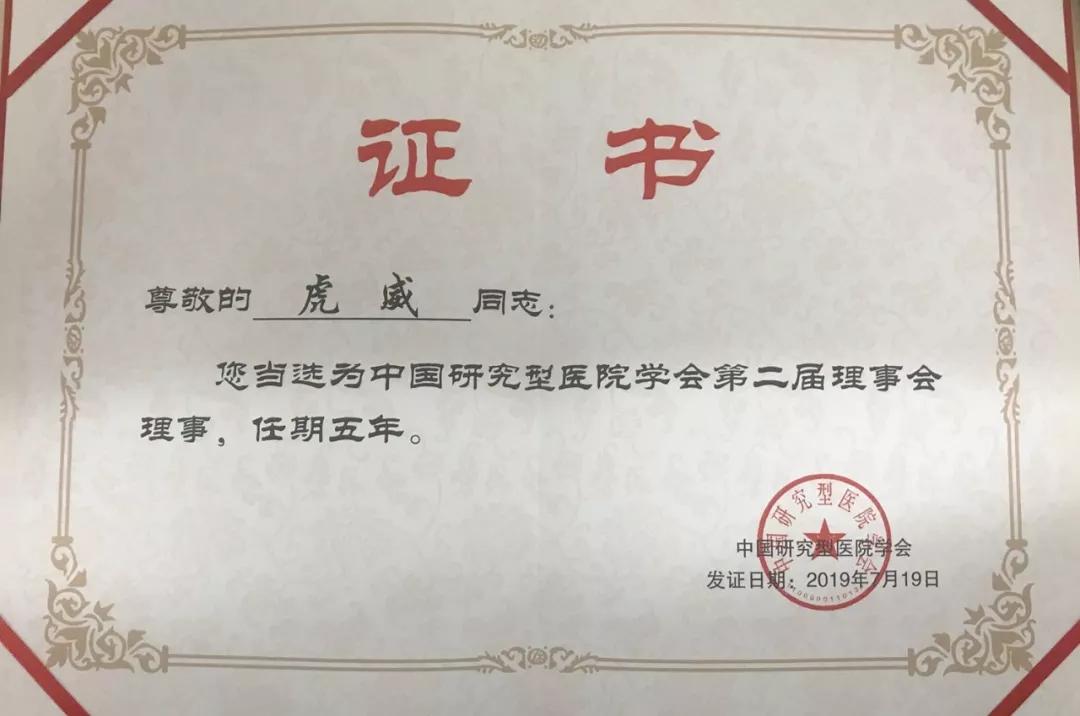 此次虎威院长当选为中国研究型医院学会理事会理事,是对色花堂 在研究型医院建设工作方面的肯定,同时在提升色花堂 品牌影响力,推动学科建设及人才培养方面具有积极的作用。