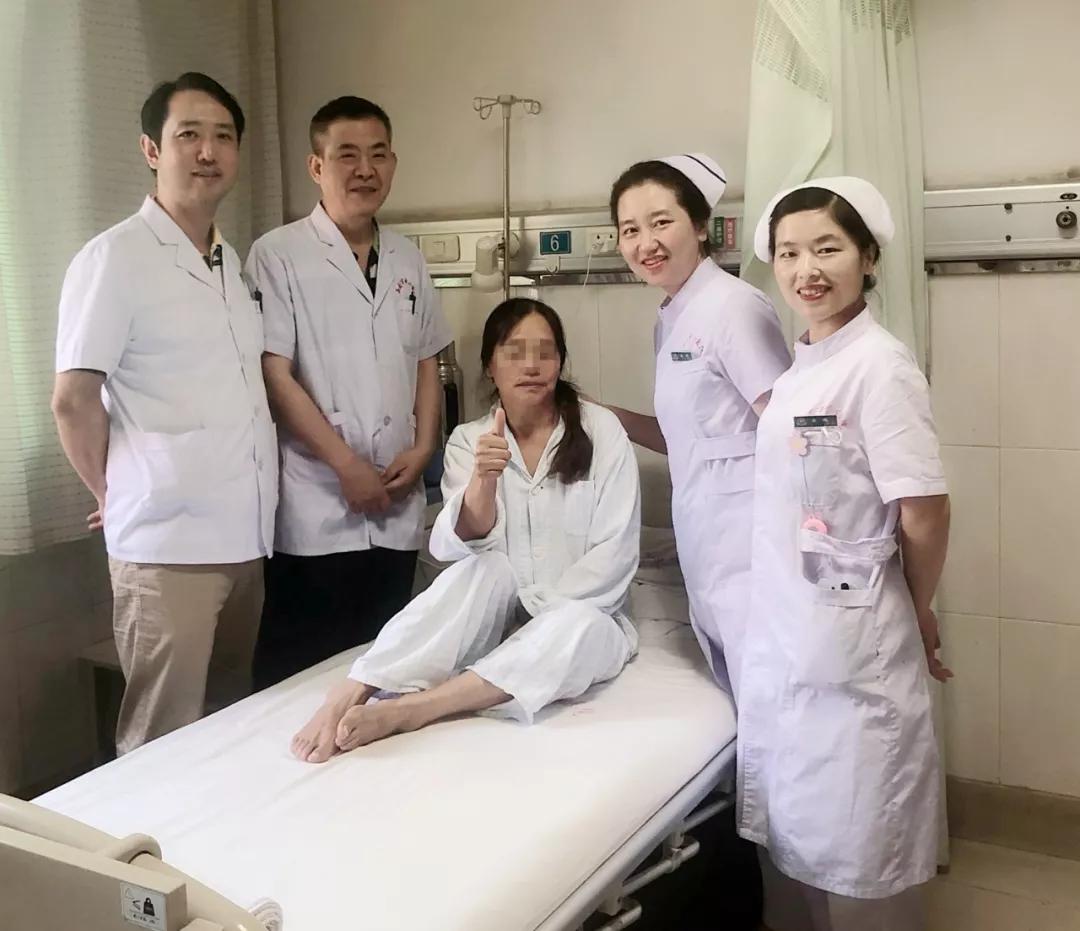 患者住院后杨平主任带领全科室医护人员多次进行认真讨论,主管医生刘延副主任医师与患者及家属多次沟通手术危险及并发症等情况。2019年8月8日上午8时11分在杨平主任的组织协调与指导下,由刘延医师,陈长虹医师在后腹腔镜下成功切除肾上腺腺瘤,手术持续近1小时,术后第二天患者的血钾已经升至正常范围,血压也接近正常范围,微创术后患者当天下床活动,术后未发生并发症。患者手术后激动地说:“太感谢你们这些医生护士了,是你们让我不再靠喝钾、补钾过日子,是你们给了我生活下去的勇气!”