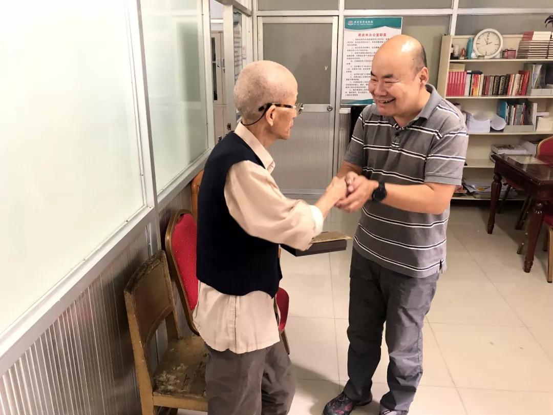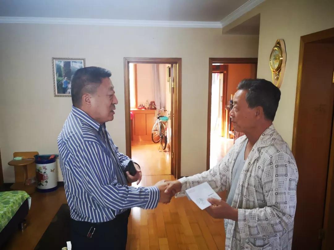 院党委书记王武占带领慰问小组分别到家中、医院走访慰问离休老干部及老党员,为他们颁发纪念章,并送上美好祝福和慰问金。“身体怎么样?生活上还有什么困难?”王书记走访慰问离退休干部刘忠诚时与他亲切交谈,关切地询问老人的身体,了解老人的日常生活情况,待遇有没有落实,嘱托老人要保重身体,并与他们分享了新中国成立70周年来的光辉历程、伟大成就和宝贵经验,介绍了医院今年以来的发展变化和取得的成绩。王书记表示,医院目前医教研工作处于高质量发展的关键期,希望刘老一如既往的关心和支持医院发展,多提宝贵意见。王书记还走访慰问了其他离退休老党员,感谢他们为医院发展做出的积极贡献,并代表医院向老人们致以崇高的敬意和诚挚的问侯。他强调,离退休老干部、老党员为党、为人民、为医院奉献了一生,是医院的宝贵财富,希望他们保重身体,健康长寿,继续发挥余热,为中心医院的发展建言献策。同时,他要求全院干部职工要向担当奉献的老同志们看齐学习,大力营造干事创业的良好氛围。
