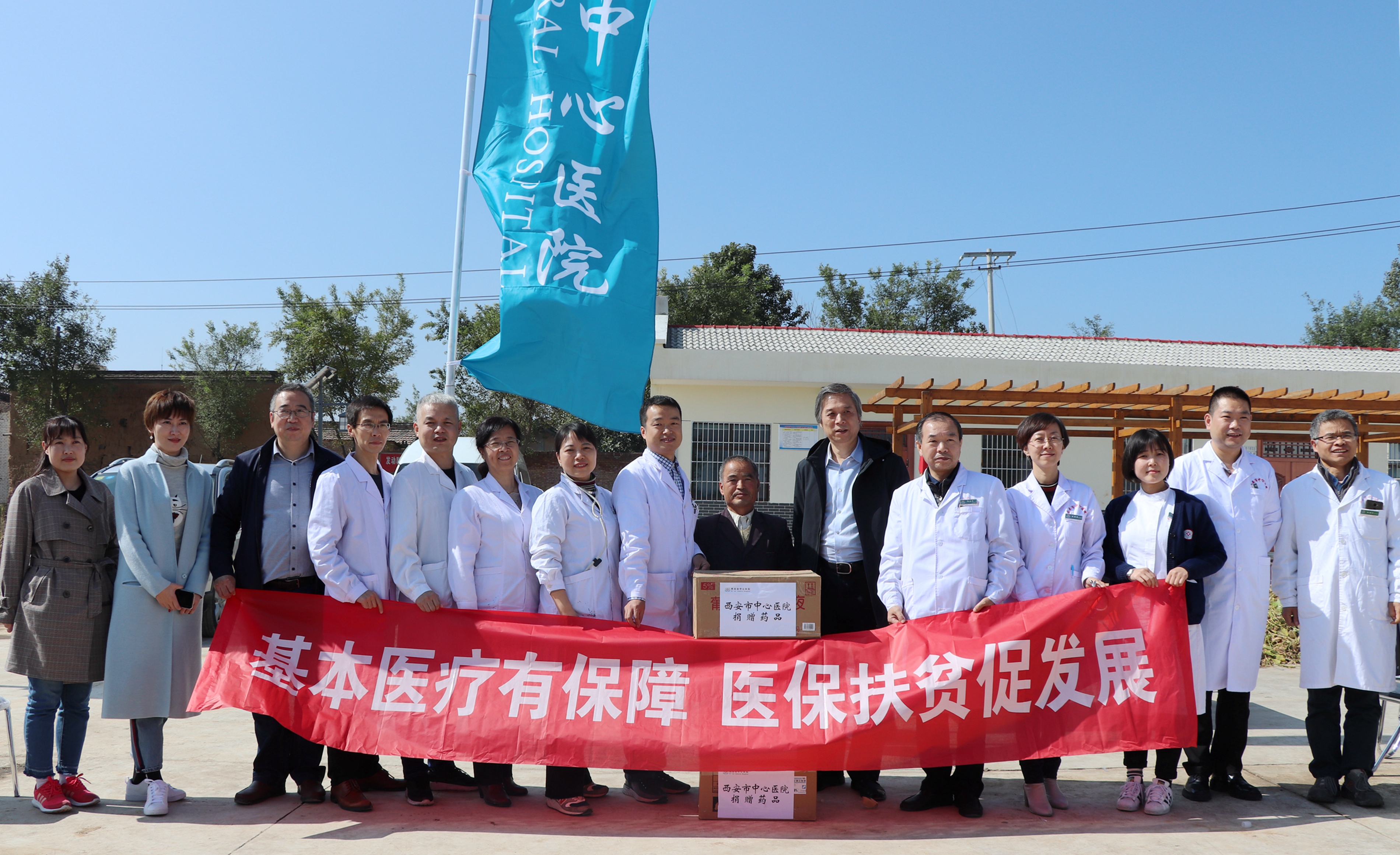 2019年10月17日,正值第六个国家扶贫日来临之际,在省医疗保障局的指导及永寿县委县政府领导的陪同下,色花堂 虎威院长及医务科刘超科长带领由医务科、医保办、外联办、妇产科、儿科、中医科、内分泌科、心内科、心电图室、眼科、骨科、急诊科等部门组成的义诊专家团队到咸阳市永寿县马坊镇东张村开展“基本医疗有保障,医保扶贫促发展”为主题的义诊活动。