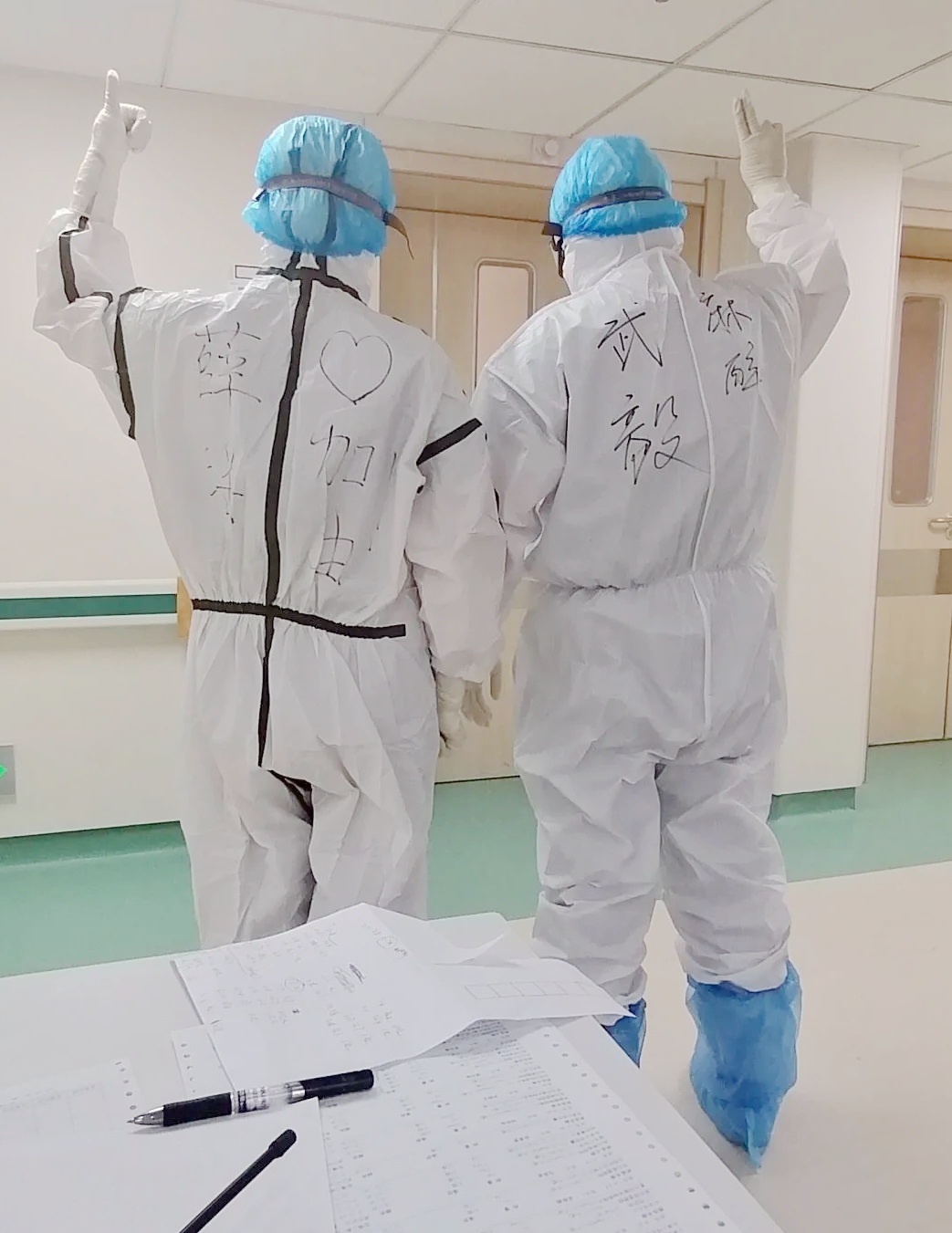 看着你凌晨发来的一张照片,我的眼睛湿润了,当你进入隔离病区后,我才知道你穿上厚厚的防护服进入工作区,一直要在隔离病区持续工作6个小时,这期间为了节约防护物资,你不能吃、不能喝、不能上厕所,更不能出隔离病区接触外人,看着你全副武装认真工作的样子,瞬间给了我莫大的勇气与力量,我心中感到为你骄傲,我想说:“前方由你负责守护病患,后方由我负责照顾家里,虽然分隔两地,但我们心在一起并肩作战。”