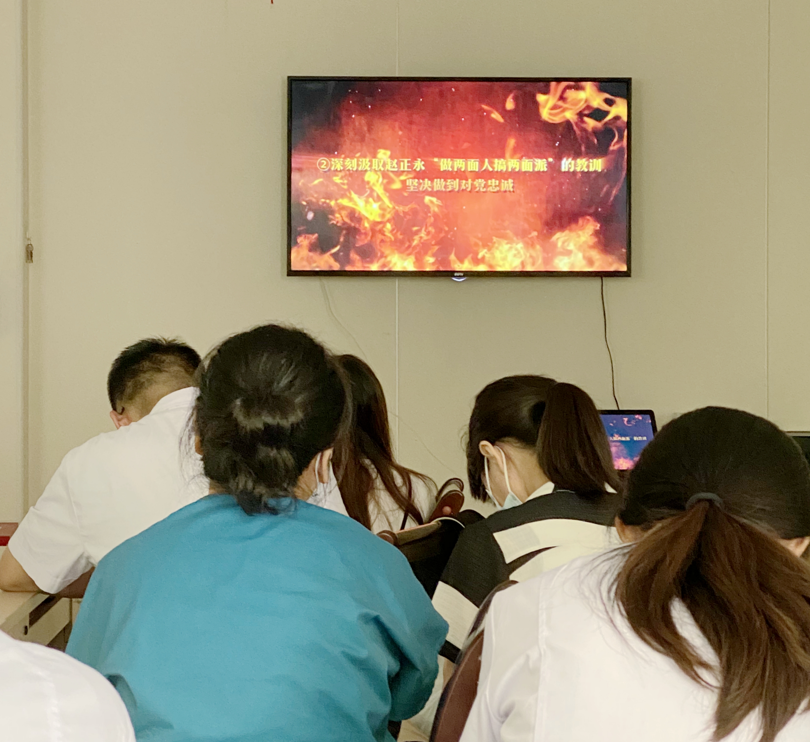 在随后的警示教育部分,组织委员付建军同志领学了《肃清赵正永流毒以案促改警示教育资料》部分内容,全体党员集体观看了《肃清流毒正风纪——赵正永严重违纪违法案以案促改警示教育片》。