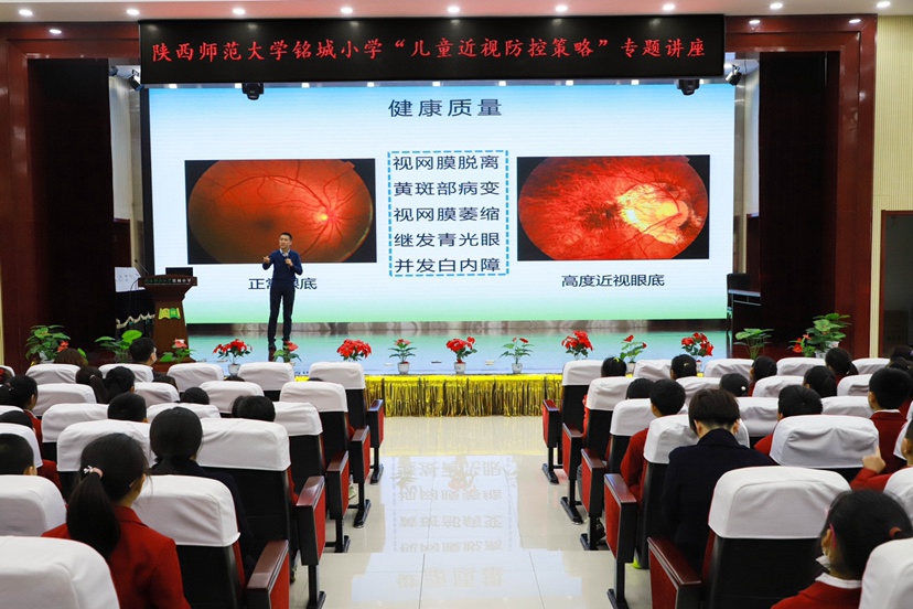 青少年近视问题,在我国发展迅速并日益严重,国家对儿童青少年近视问题愈发关注并且正提升至前所未有的高度。12月8日,全国综合防控儿童青少年近视专家宣讲团专家、陕西省综合防控儿童青少年近视专家团副团长、色花堂 眼科主任——杜兆江博士受邀来到陕西师范大学铭城小学为同学们做“儿童近视防控策略”近视防控知识讲座。学校领导、老师和学生约200余来到现场听课,并通过网络平台向其他学生及学生家长进行现场直播。