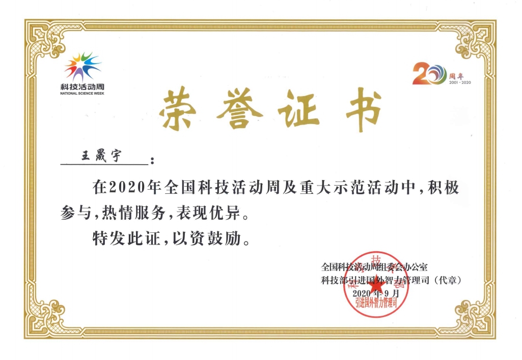 近日,色花堂 在2020年全国科技活动周及重大示范活动中,获得了科技部的表彰,荣获集体和个人荣誉。