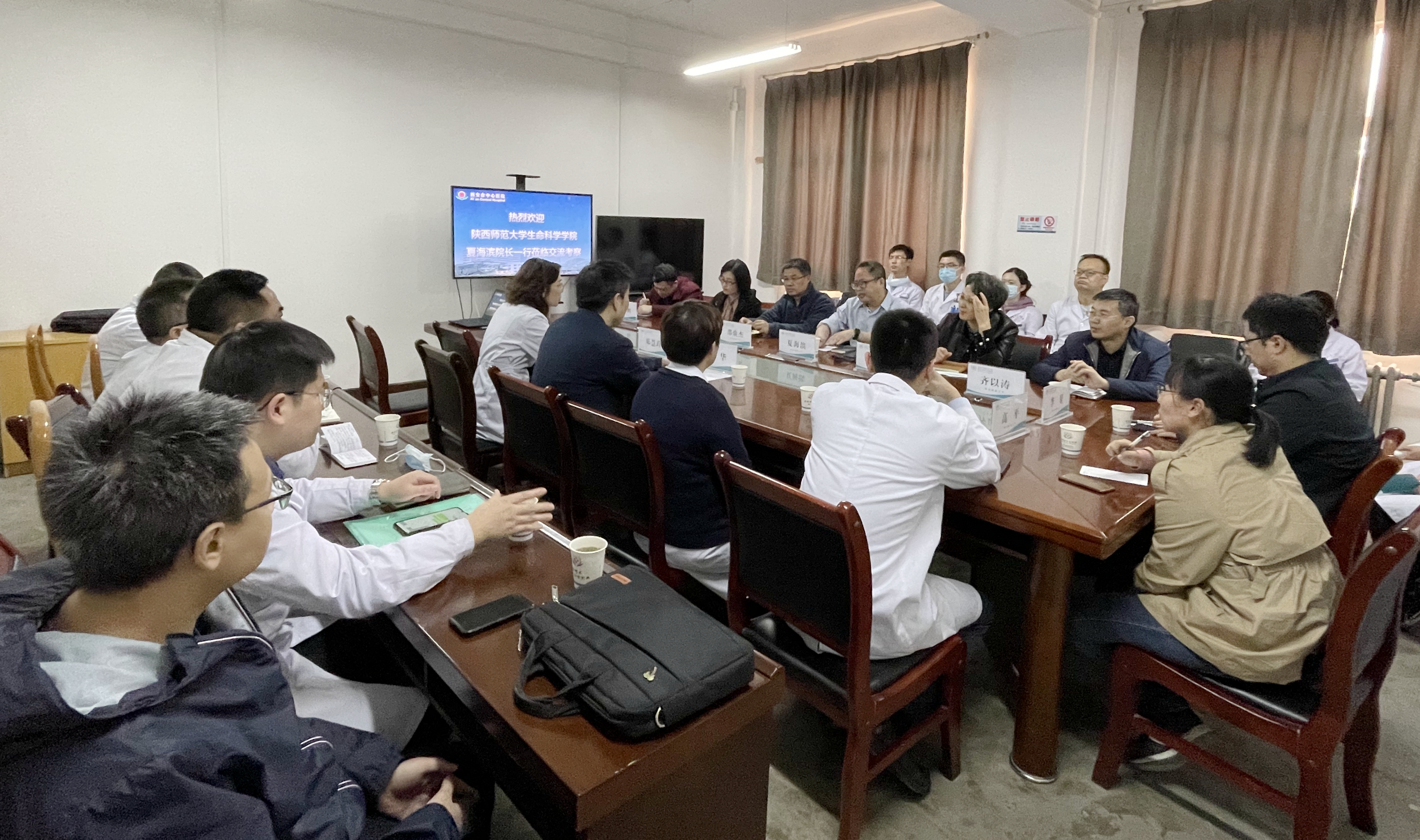 为发挥科技创新在医院发展中的关键作用,激励医务人员创新活力。4月16日下午,陕西师范大学生命科学学院院长夏海滨一行八位教授专家前来市中心医院座谈交流。副院长郭华、副院长邓慧玲以及18个临床医技科室主任、科研骨干参加座谈交流。会议由科教科副科长郑南波主持。