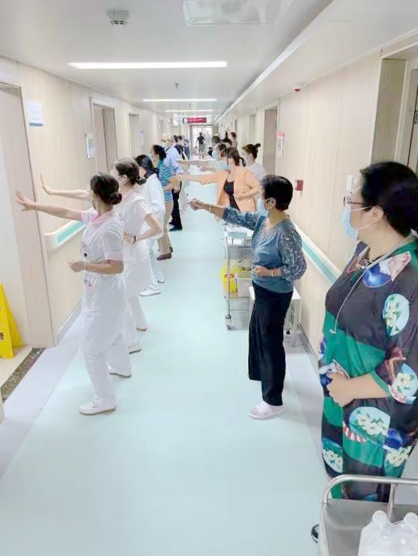 通过神经内科专家了解到,八段锦属于我国传统导引养生功法之一,长期练习可以提升身体机能,对健康大有裨益。它通过低强度的肢体运动,可促进血液循环,对神经系统、心血管系统、消化系统、呼吸系统及运动器官都有良好的调节作用。对于神经科住院患者,通过练习八段锦,可以活动全身关节、肌肉、调节精神紧张、改善新陈代谢、增强心肺功能,有促进神经功能恢复,防止卧床相关并发症的作用,也可以通过集体活动,改善病房氛围,防止住院患者出现紧张、焦虑情绪。