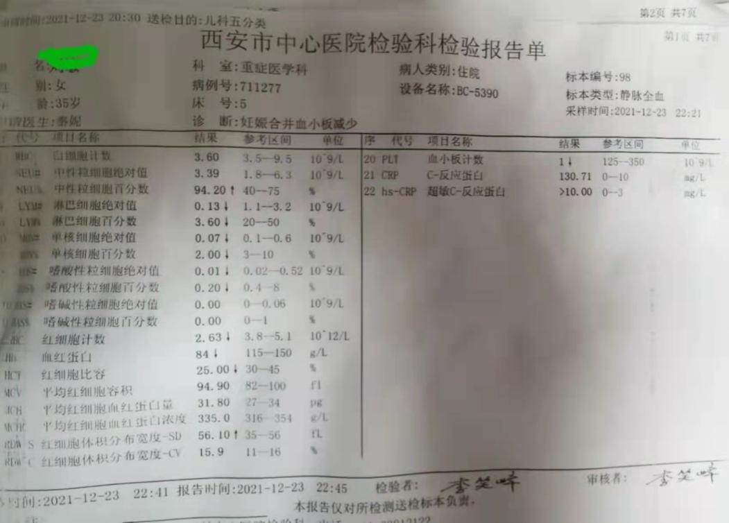 2021年12月23日,西安封城第一天,8点刚一上班,产科就收到由120送来的从某县医院经过一晚辗转终于落脚在色花堂 的孕妇小刘,孕妇已经生育过2个孩子,本次孕32+4周,因为4天内血小板数由218×109/L急剧下降到20×109/L,紧急转诊到色花堂 。