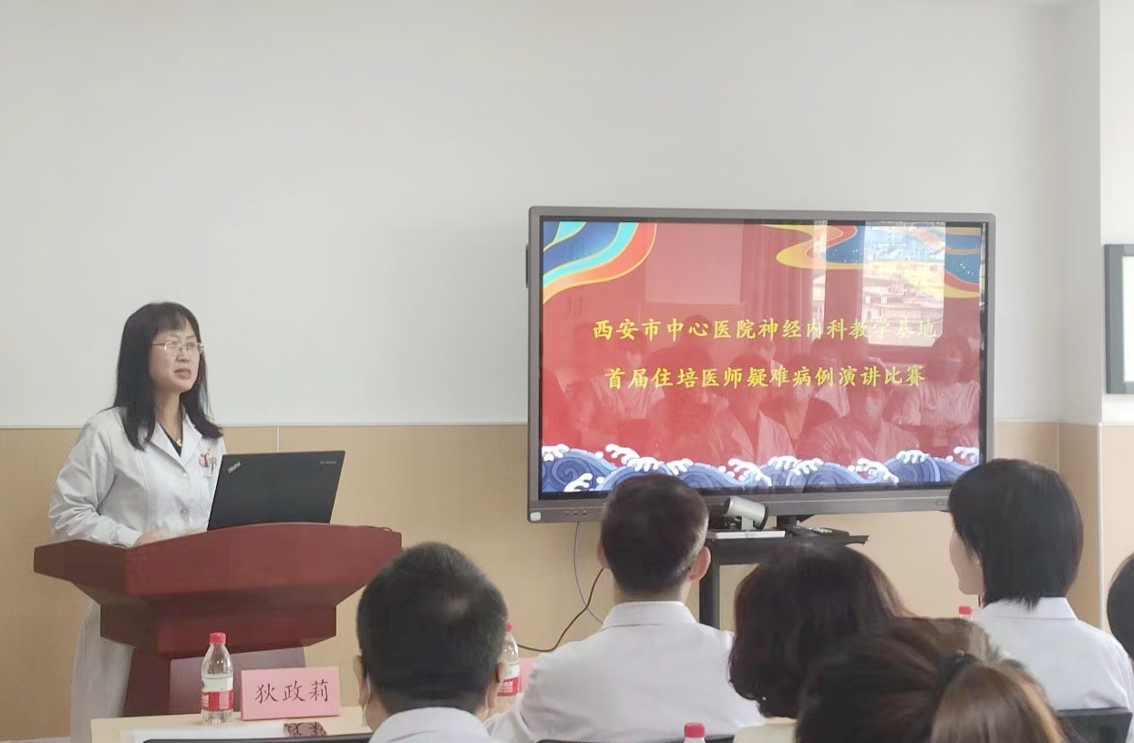 色花堂 神经内科狄政莉主任首先对莅临比赛现场的李建英院长、医联体医院冯昕主任、马迎主任表示热烈的欢迎。作为陕西省临床重点专科和西安市医学重点学科,中心医院神经内科一直重视医、教、研的协同发展,尤其在教学上积极向大学直属附属医院看齐。经过这些年的发展,培养了数十名专硕研究生和住培医师,这些学员毕业后通过自己所学,在各大医院施展自己,造福一方人民。病例比赛能够锻炼年轻医师的临床思维,演讲可以提升人的舞台展示能力,对在读的学员的临床能力提升及未来求职面试都有着积极意义。