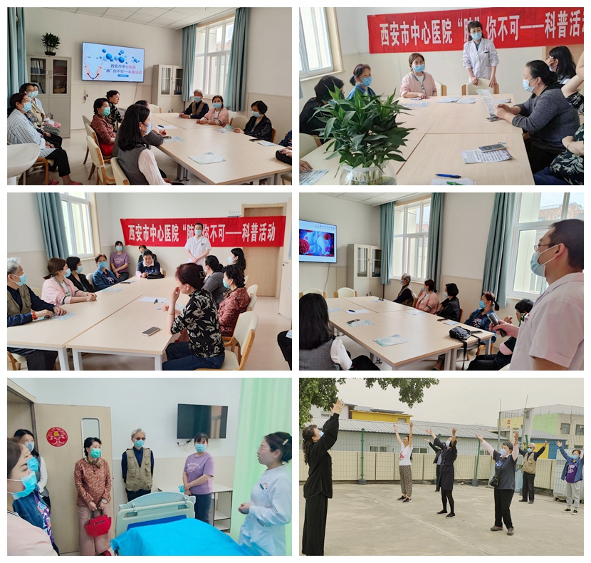 活动先由全科医学科王琦侠主任主持启动,并由雷涛主治医师为各位街坊邻居详细讲解了呼吸系统疾病的发病特点、高危因素,以及肺部疾病的自我锻炼康复方法。接下来王颖主管护师引导大家参观了全科医学科各种心肺康复仪器及技术手段。最后王琦侠主任带领大家在我科活动区上一起进行了国家体育总局健身气功——五禽戏的练习。