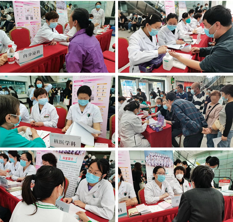 甲状腺是人体最大的内分泌器官,是调节机体生长发育与新陈代谢的“发动机”。“国际甲状腺知识宣传周”是由国际甲状腺联盟(TIF Thyroid Federation International)发起的全球范围内的甲状腺健康知识宣传活动。今年是第15个“国际甲状腺知识宣传周”,今年的主题是“守护甲状腺,提升她力量”。为提醒全社会关注女性甲状腺,把甲状腺疾病对家庭的危害降至最低,在院领导大力支持下,在门诊办、保卫科等部门的协助下,内分泌科联合甲乳外科(普外三科)、核医学科、营养科、儿保科等于5月23日上午9点至11点在门诊大厅开展甲状腺疾病义诊及科普活动。