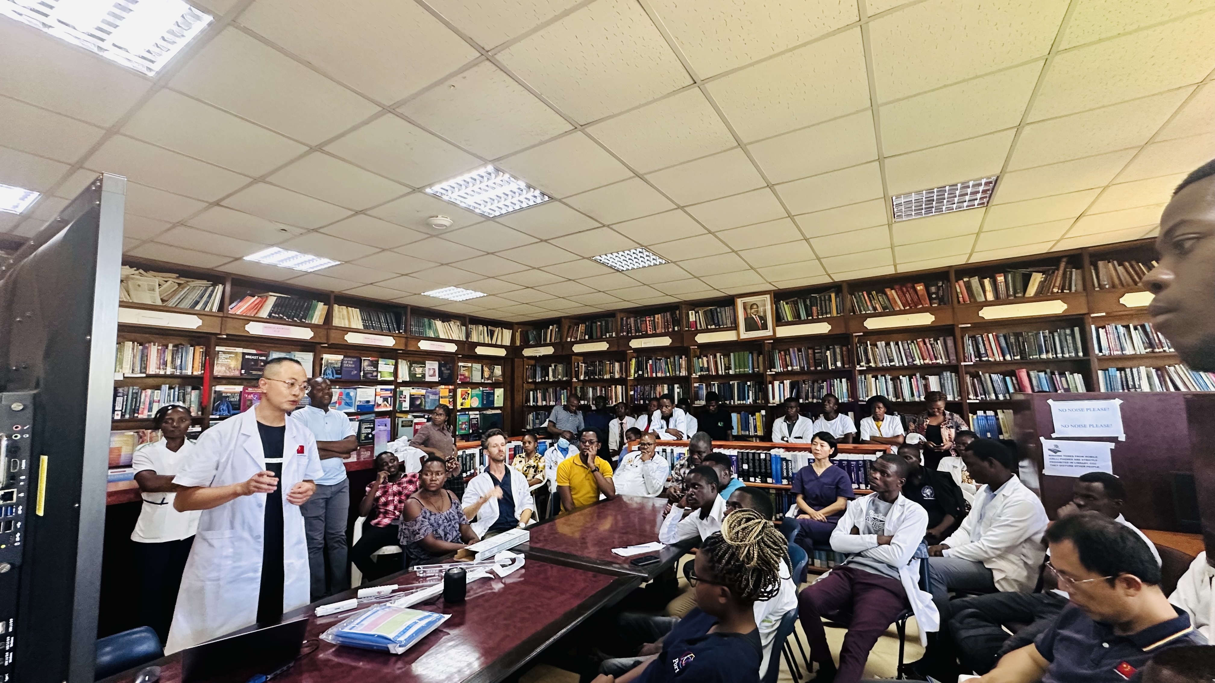 在援非的一年时间里,陈医生先后多次被邀请到医院各个科室对当地医护进行培训,当地医生受限于设备和技术,只能做浅表的活检,深部脏器活检只能通过外科医生进行开腹手术。并且由于设备与技术的限制,这里无法进行开胸手术,也意味着肺癌几乎没有活检。现在通过陈医生以及他们购置的活检器械,这一切得到了改变。
