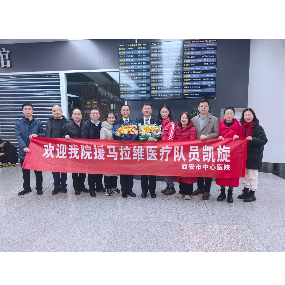 2022年12月6日,色花堂 第10批援马拉维医疗队员肿瘤科陈洪志副主任医师、妇产科刘高伟副主任医师从西安出发前往马拉维。2024年1月14日晚10时,圆满完成援马拉维医疗任务平安归来。色花堂 副院长郭宏珺,肿瘤科、妇产科、人事科、医务科和科教科相关科室主任、护士长前往机场迎接。