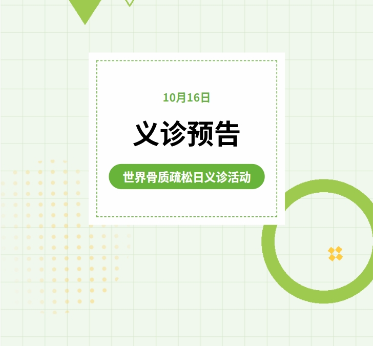 义诊内容:骨质疏松症、内分泌代谢性疾病咨询、免费血压血糖检测、免费发放科普资料