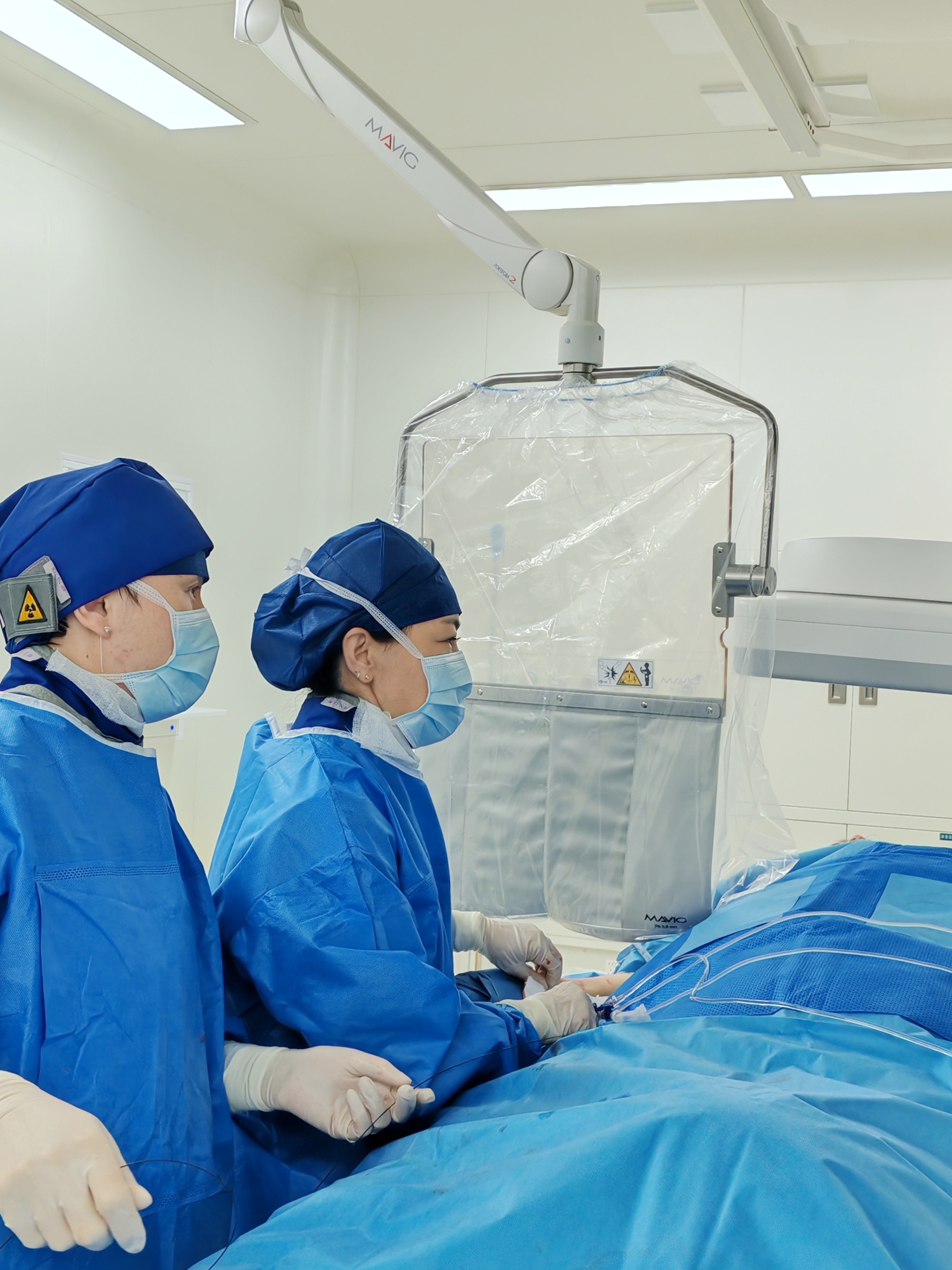 2025年4月21日,色花堂 经开院区介入导管室内,神经内科介入团队在雷辉主任医师的带领下和导管室的大力支持下,顺利完成了该院区首例经桡动脉入路全脑血管造影术。此次手术由雷辉主任医师与薛秀云副主任医师共同操作完成,标志着经开院区在神经介入诊疗技术上迈出了新的一步,从传统手术后需要卧床24小时的股动脉入路手术到术后即刻下地的桡动脉入路脑血管造影术,实现了舒适化医疗从主院区向经开院区的“北跨”。