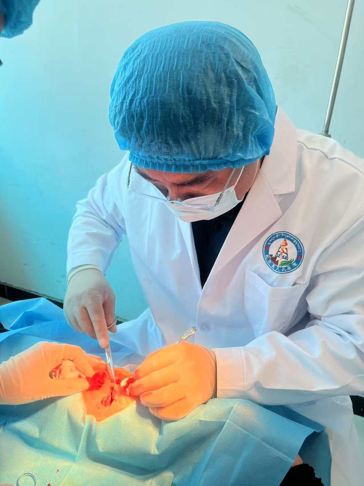 高原地区特殊饮食习惯导致肛肠疾病多发且复杂。援藏医生李恒面对一例复杂的高位肛瘘患者,在设备相对有限的情况下,他凭借丰富经验,精心设计手术方案,以最小的创伤成功实施“肛瘘挂线术”。术后,他不仅每日数次亲自查看伤口,更将每一次换药都变为现场教学。他一边操作,一边向围观的本地医生详细讲解挂线松紧度控制的要点、脓腔引流的技巧:“松了效果不佳,紧了病人剧痛,这个手感,要在实践中反复体会。”一位年轻的藏族医生在他的指导下,首次成功独立完成一例低位肛瘘手术,那份自信的笑容,正是技术扎根高原的最美印证。