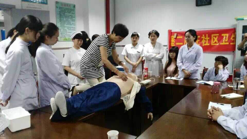 肾泌科护士夏静还向二府庄社区卫生服务中心工作人员演示了糖尿病健康保健操。