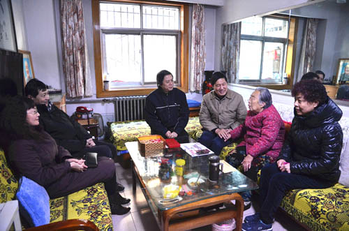 早春的寒意抵挡不住浓浓的温暖, 2016年1月25日一早,虎威院长、院党委王武占书记带领班子成员前往离休老干部、劳模、享受政府特殊津贴专家、困难职工及老领导、老专家遗属家中和工作岗位进行走访慰问。