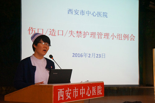 压疮、造口、失禁护理管理小组工作,详细分析了压疮护理管理组工作现状和具体数据,提出专业小组工作中的问题和不足。并就压疮管理小组组织结构、成员职责、压疮管理制度、压疮护理会诊制度、评估流程、上报制度等方面进行了详细的讲解和重点强调。潘艳护士长还对不同临床分期压疮的治疗和护理进行了深入浅出的讲解和示范。与会人员有问有答,同时还对临床出现的疑难问题展开了深入讨论。