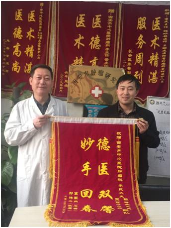 肿瘤科,向李民主任医师送来锦旗和感谢信。