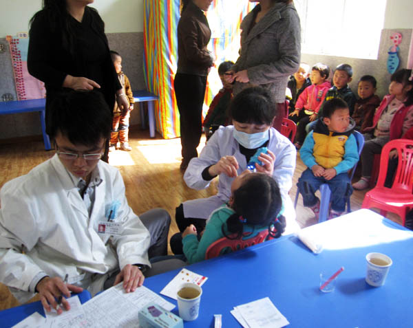 口腔科为西安市学龄前儿童乳牙龋综合干预工作试点单位之一。根据试点工作要求,10月初口腔科明确了承担试点工作的人员和职责,并制定了内部管理规则。10月9日,由李线绒副主任医师对参与人员进行口腔局部用氟的规范化培训,开展内部质量控制,并对试点工作的实施细节进行讨论。10月中、下旬,李线绒、张新、王竞博、王晓燕、苗朝旭等医师不辞辛苦,带领学生及护士奔赴宋庆龄育儿中心、筑梦幼儿园、宝康幼儿园,为1000名幼儿进行口腔健康教育、口腔健康检查及局部用氟工作。 窝沟封闭和局部用氟这两个预防龋齿、健康口腔的项目已经纳入2012年卫生部公共卫生管理项目,它不仅是一项社会公益事业,而且它对口腔整体工作起到积极促进作用。另外,色花堂
