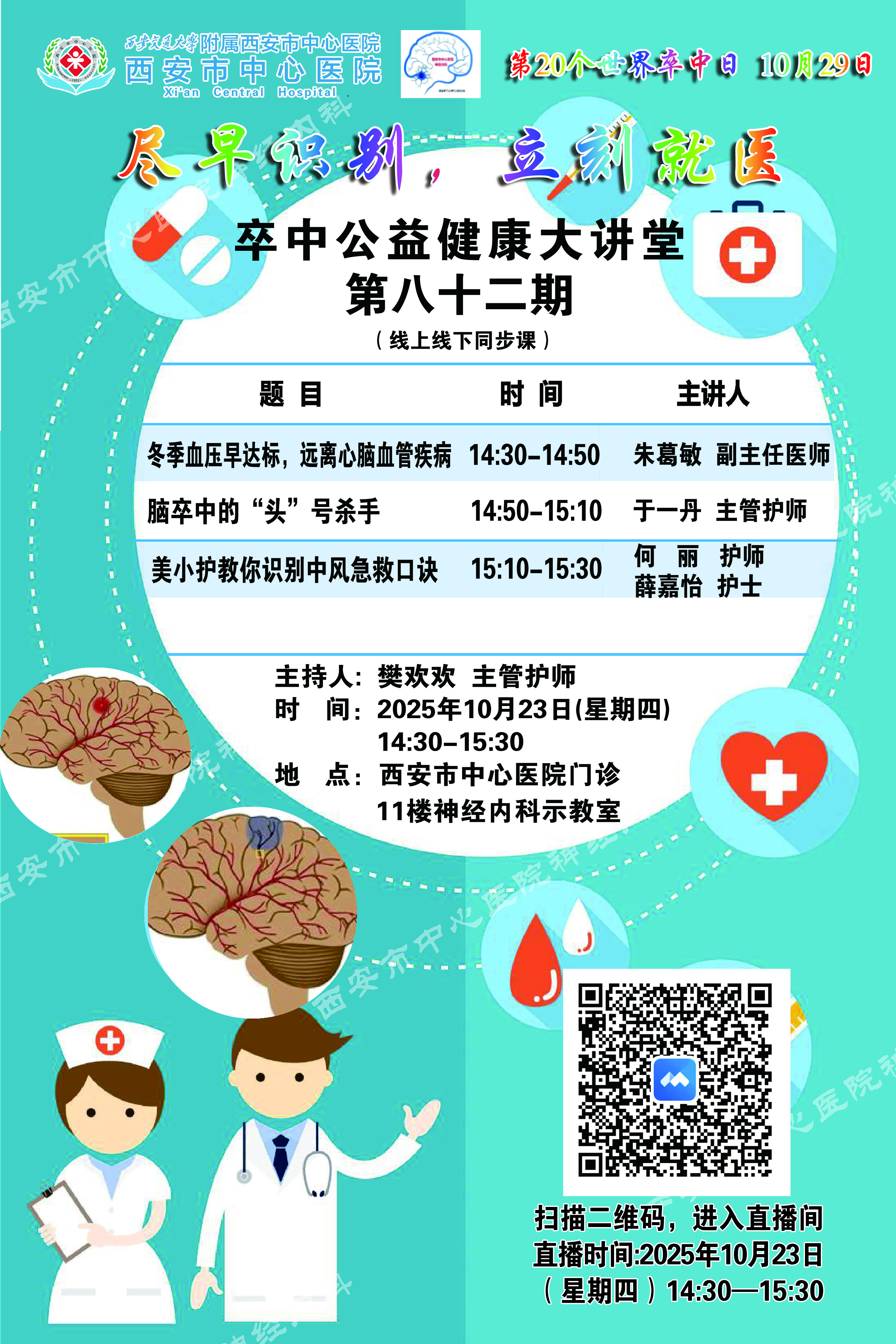 · 健康零距离:我们将组织多名专家团队,深入社区,为您提供卒中相关危险因素筛查及健康指导。