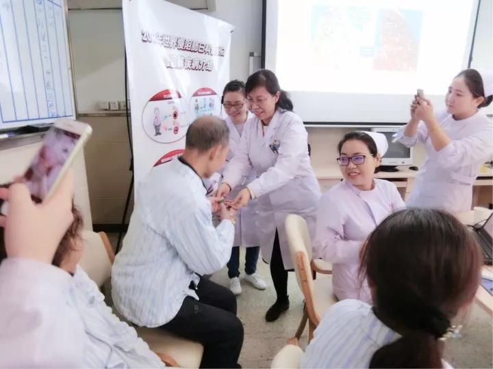 为了帮助人们提高对慢阻肺的认识,在色花堂 呼吸科团队高度重视、积极准备下,于2017年11月14日上午9:00-11:30,色花堂 呼吸内科在门诊大厅开展了慢阻肺义诊活动,各位专家对前来咨询、问诊的50余名患者及家属耐心一一答疑解惑。于同日的下午2:00在呼吸内科医生办公室开展了“慢阻肺日”主题宣传活动。李副院长利用休息时间,提前跟慕名而来的患者朋友近距离亲切交流。活动现场采取了展架、播放沙画、视频、科普知识小讲课、有奖问答等多种形式,向患者宣传了慢阻肺的防治知识。同时,医护人员带领着患者在呼吸科病区走廊一起吹气球,一对一指导患者进行呼吸功能锻炼运动,让患者真正认识到健康的生活方式及对防治慢阻肺的重要性。