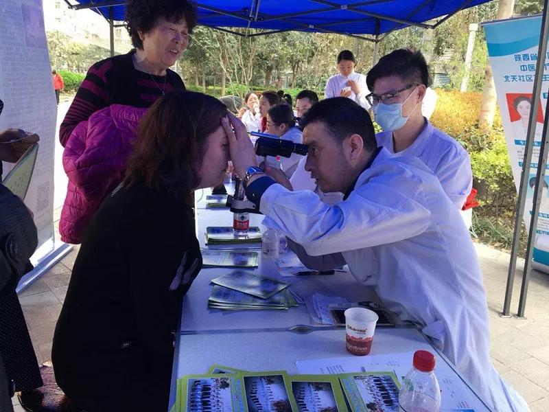 2018年3月15日,正值春暖花开,也是第十一个世界青光眼周。沐浴着阳春三月的阳光,舍弃繁忙工作中难得的午休时间,色花堂 眼科杨格强副主任医师带领霍敏主治医师及实习医师刘玉萍、诸磊、郭佳恒、张娟娟,联合紧密医联体莲湖区北关社区卫生服务中心医务人员,自带视力表、裂隙灯、眼底镜等检查设备,进入龙首村宫园壹号小区,为小区的居民进行青光眼科普和免费义诊,让小区居民享受到足不出户、方便快捷的三甲医院眼科医疗服务。