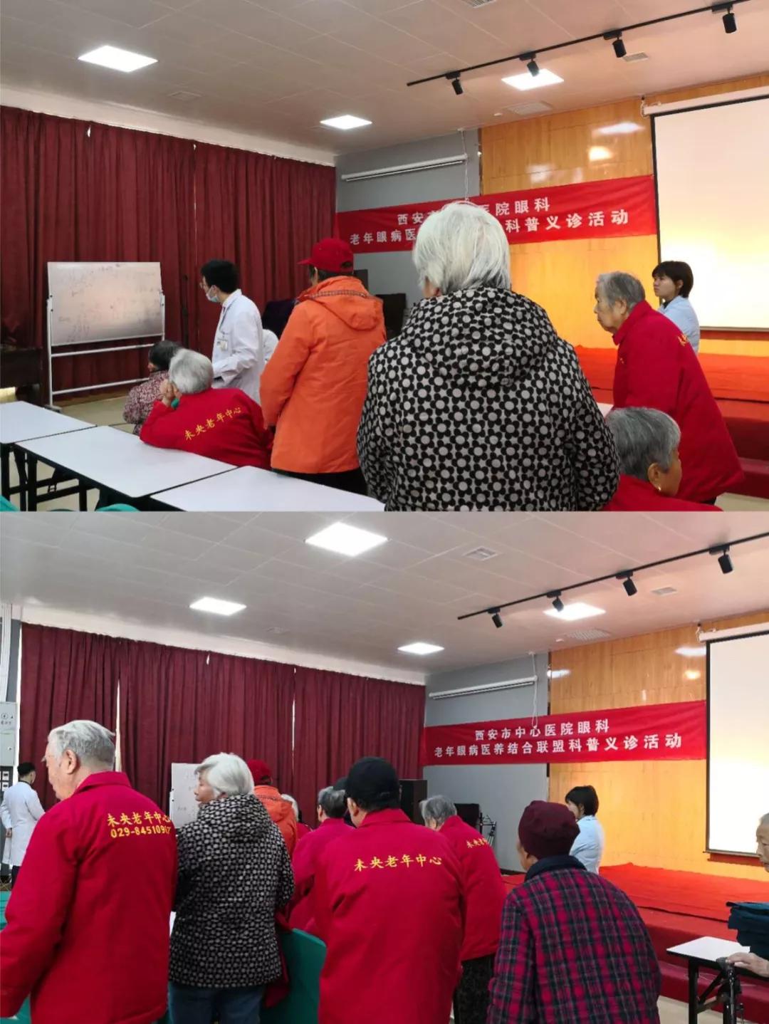 立冬刚至,寒风瑟瑟,连日的阴雨天气终于放晴,经色花堂 第二党支部书记肖瑛的安排,眼科团队在杜兆江主任的带领下,组成由副主任医师伊恩晖、实习同学刘裕森、孙晶、何二浪、常海荣的义诊团队,迎着寒风来到了陕西省最大的养老机构——西安市未央区老年福利服务中心,为这里的老人提供眼科科普知识宣讲、免费眼部检查和眼病咨询活动。此次活动既是开展色花堂 第二党支部“讲忠诚、强本领、勇担当、敢开拓、肯实干、正当铁军标兵”的主题党日活动,也是色花堂 眼科老年眼病医养结合联盟第18次基层科普义诊活动。