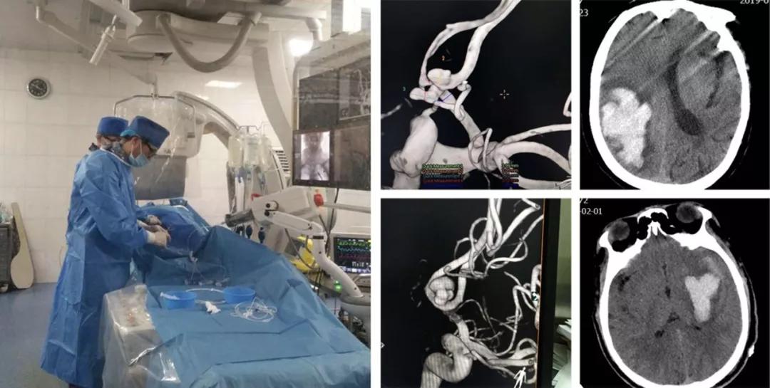 王宏主任医师和谢非主治医师一大早便有两台“全脑血管造影+栓塞”进行,张胡金副主任医师和柴源主治医师随后跟上一台硬脑膜动静脉瘘……。这边介入还没结束,急诊又新入蛛网膜下腔出血、车祸伤、脑出血、血管畸形……,神经外科以急诊为令,龙乾发主任携科室全员参与到各类手术当中。科室新年第一天几乎按教科书式的把外伤、出血、动脉瘤、血管畸形、肿瘤等手术全过一遍,单日手术量9台突破科室历史新高。