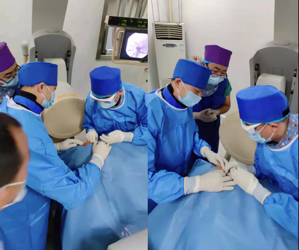 8月22日下午,王占尧主任医师、贺中正主治医师、万晓强主治医师给予患者在神经介入下行左侧三叉神经半月结球囊压迫术,仅耗时一个小时便成功圆满完成手术。术后侧重面部,左侧面部疼痛感已完全消失,患者如释重负,感觉获得了重生。患者出院时激动地感谢道:“谢谢你们,谢谢你们,因为这病呀,我这八年来是没一天安宁,幸好是遇到了你们呀,太感谢你们这段时间的精心诊治了,总算是摆脱了这三叉神经痛”。