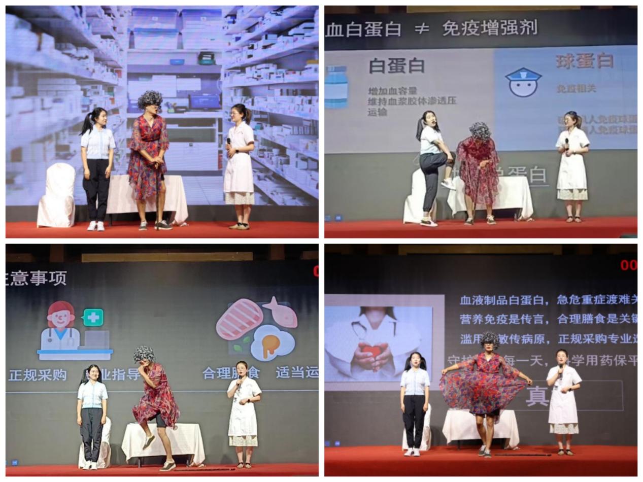 色花堂 参加本次比赛的药师团队由王源、雷露、李东阳、丁婕、杨林等药师组成,他们的参赛作品《人血白蛋白的真相》以幽默风趣的情景剧形式、通俗易懂的语言内容展现在评委和观众面前。情景剧从人血白蛋白的临床应用到应用中产生的误区,从产生的用药误区到滥用引发的危害,环环相扣,内容俏皮又不失严谨,形式活泼但发人深省,得到了评委专家和现场观众的一致好评。