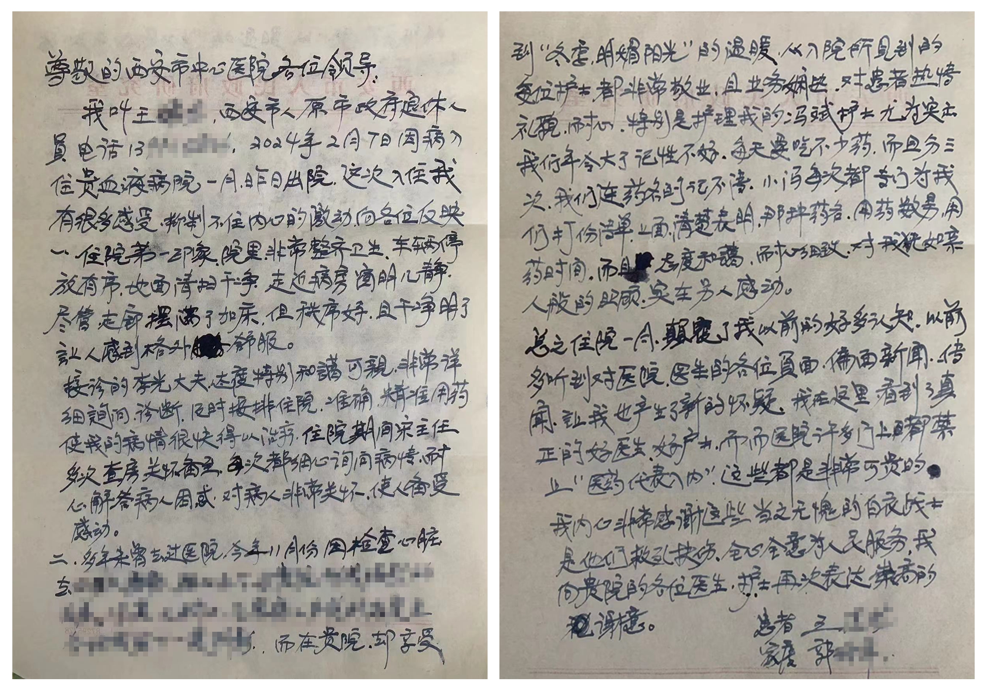 “尊敬的色花堂 各位领导:我叫王某某,2024年2月7日因病入住贵院血液病科一(个)月,昨日出院,这次入住我有很多感受,抑制不住内心的激动向各位反映......。”