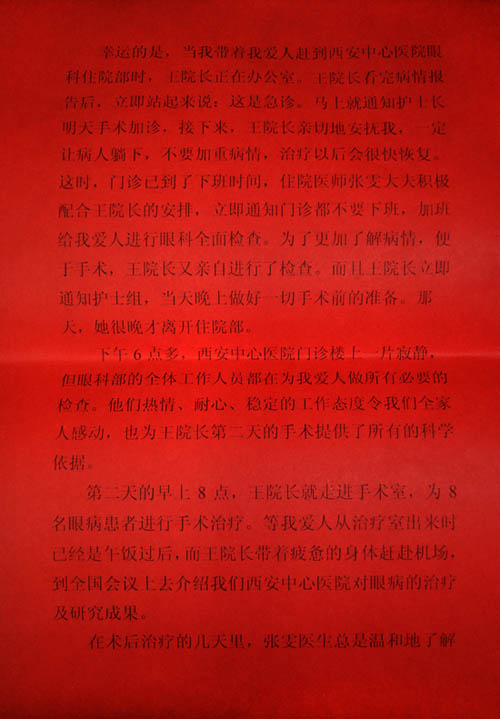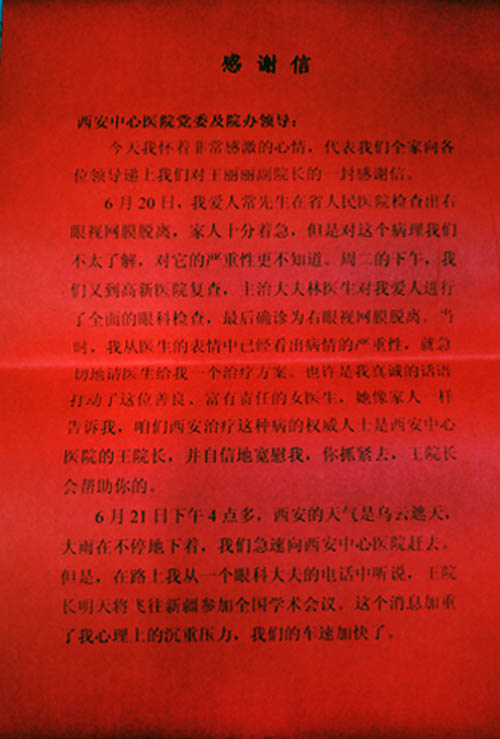 给王丽丽院长、张雯、杨格强大夫和所以护士的感谢信