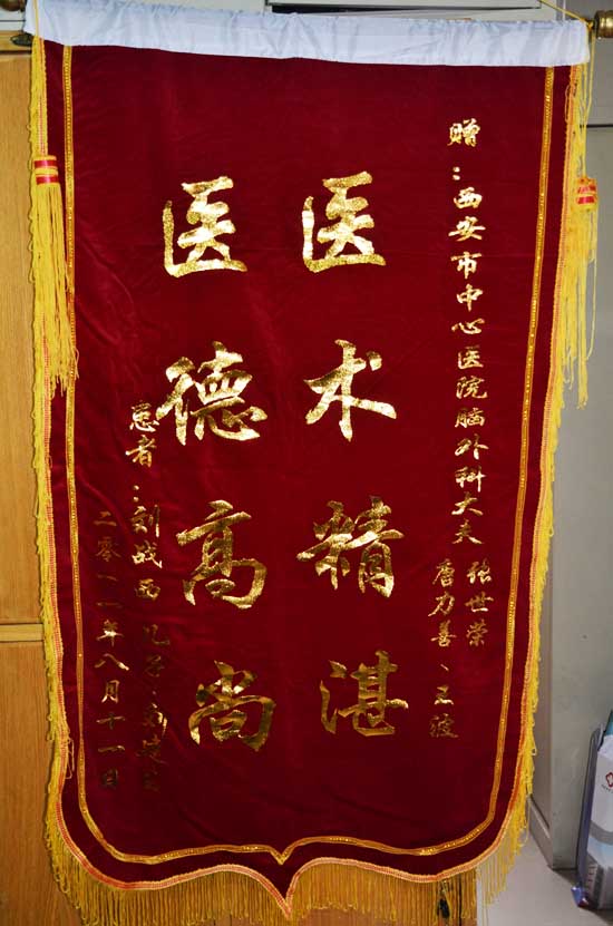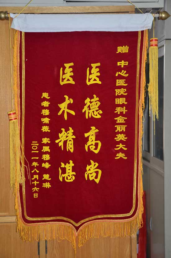 患者送脑外科唐力善、张世荣,眼科金丽英锦旗