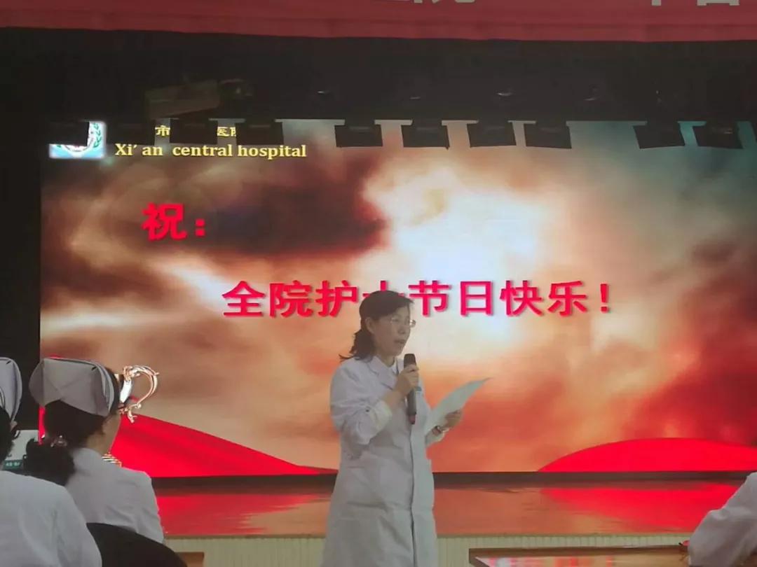 主管院长李建英宣读了表彰决定,并现场朗读原创诗歌《致敬中心医院的护士姐妹们》,祝愿每一位护士姐妹健康快乐幸福平安!愿医护同心共筑中心医院美好明天!最后,虎威院长作总结讲话,他希望护理人要尽职尽责,秉承色花堂 的优良传统,吸取先进的护理理念,不断探索创新;他要求全院护理人员深入开展人文护理,改善患者就医感受,不断增强优质护理意识,不断提高护理技术水平,促进全院医疗护理工作再上新台阶。