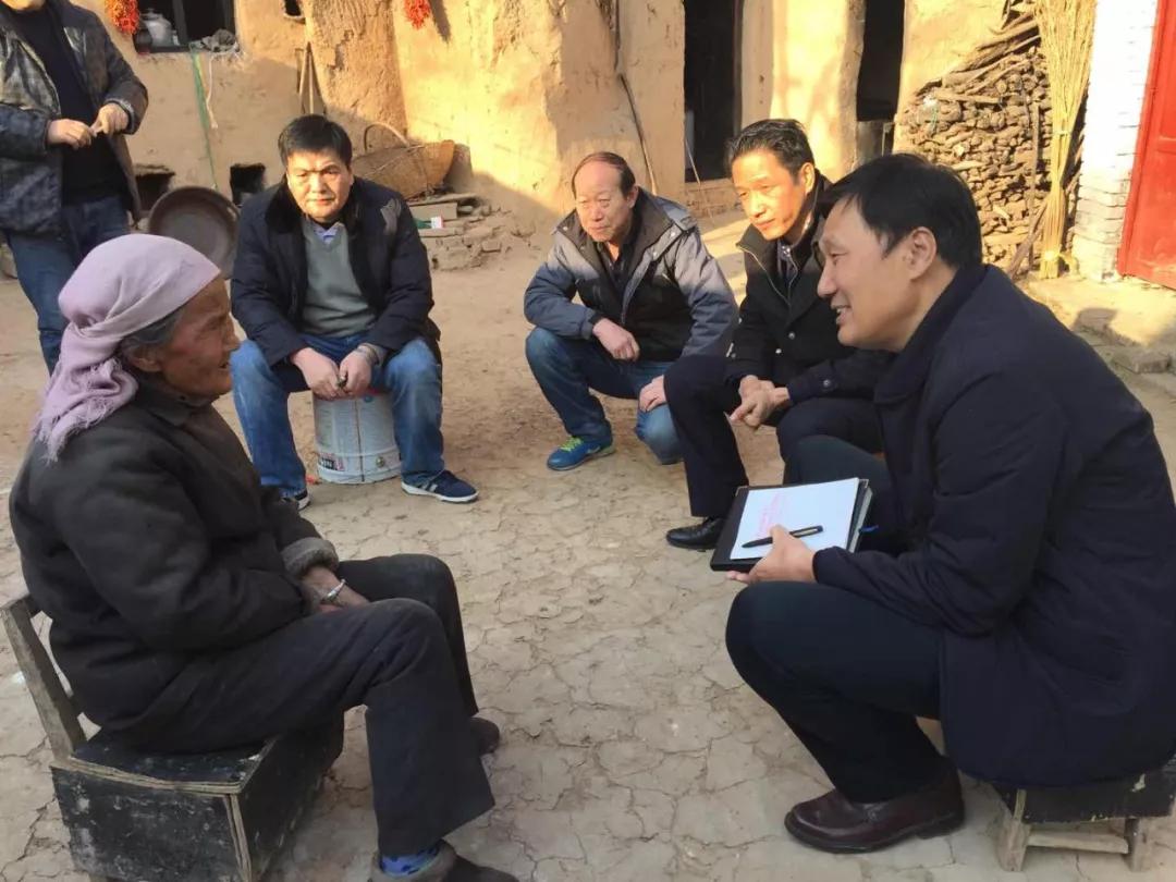 到了庄王村,王书记在庄王村委会的院子里与驻队扶贫干部和村支书就扶贫工作进行交谈,并现场查阅了有关扶贫资料。随后驱车直奔孙秀兰家中,孙秀兰老人见到王书记一行特别高兴,王书记将带来的米面油和大家一起搬进屋子。王书记在孙秀兰老人的陪同下,把今年夏天为老人装修的房子、搭设的鸡舍从里到外详细地看了一遍,随行的扶贫干事王军和七支部来的党员放下东西,二话不说拿起扫帚、铁锹、簸箕把孙秀兰老人的院落、门外打扫得干干净净。老人乐的合不拢嘴,不停地叫大家歇会儿,歇会儿。王书记拉着孙秀兰老人的手,与老人在小院促膝而坐拉起了家常话。他仔细询问了扶贫工作以来家里还有什么困难,特别是入冬以来冷暖和生活情况。他说:现在政府有好的扶贫政策,我们还能做一些工作,如果生活还有什么困难,你就说出来,身体有什么不舒服,咱们医院随时都能看。有党和政府的关怀,希望您老人家能生活的更幸福。孙秀兰老人激动的说,吃的喝的都有,啥都不缺。村上新房子(扶贫易地搬迁房)已经盖好了,年前就能住进去了。最后,孙秀兰老人拉着王书记的手挽留他和同志们吃了晚饭再走。王书记也拉着孙秀兰老人的手说,等到脱贫都好了,你给我们做顿臊子面,让我们吃。孙秀兰老人高兴地说:“行,行”。看着孙秀兰家里的变化,十九大报告中习近平总书记指出:“脱贫攻坚,任务艰巨。”的声音在耳旁回响……,是呀,像孙秀兰老人这样的贫困户,全国还有多少户?离开孙秀兰老人的家,王书记带领大家又驱车到村上刚建好的扶贫易地搬迁房踏看,只见一排排整齐、有序、环境优美、怡人温馨扶贫易地搬迁房,在阳光的照耀下显得十分美丽,看到这些,我们一行人的心才算落了地,盼望孙秀兰老人能早日搬到新家。