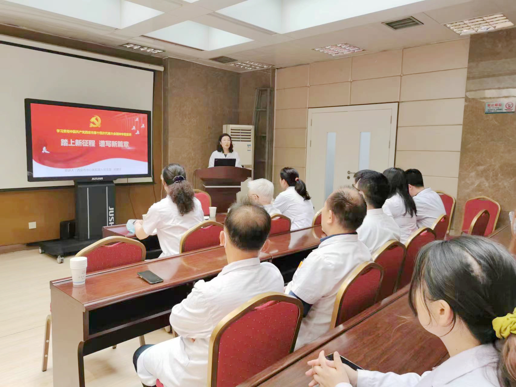 宣誓完毕,邓慧玲副院长以《展现新担当,谱写新篇章》为题,进行了市第十四次党代会精神的宣讲学习,邓院长从大会报告的四个方面,深入剖析了市第十四次党代会的大会主题和重大意义,西安过去五年取得的成绩以及未来五年高质量发展的指导思想、奋斗目标和重点任务,既有理论高度、又有全局视野,既有历史纵深感、又有现实针对性,为党员上了生动的一课。同时邓院长也向全体党员提出新的要求,要求全体党员统一思想,凝聚行动,理顺思路,谋划发展,树立患者至上,质量立院,服务兴院的宗旨,立足色花堂 “一院四区”发展,发挥共产党员的模范带头作用,不断增强患者的获得感、幸福感、安全感,奋力谱写中心医院高质量发展新篇章。